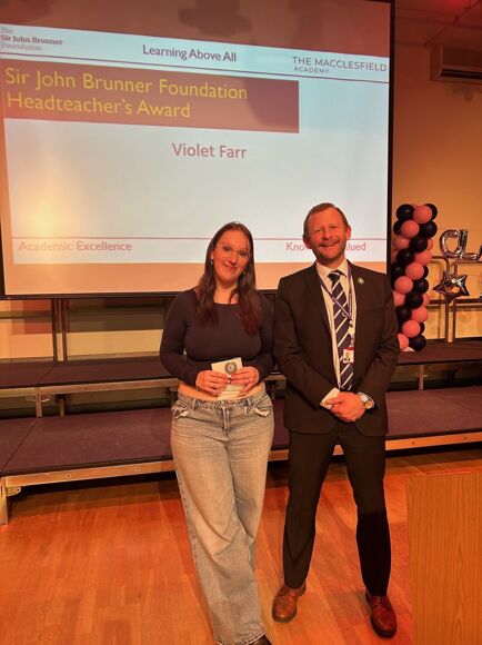 Special Recognition awards were presented to Raphie for Best Progress, Laura for Best Results, and Elizabeth as Sportsperson of the Year. Our former school captains Paige, Izza, Mahfuz and Patrick were also recognised, and the Sir John Brunner Foundation Headteacher's Award was presented to Violet.